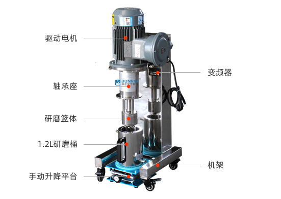 | BLS-0.75 | 0.75 | 0-3000 | 0.15 | 1.2L雙層料缸 | 純氧化鋯珠 | 0.8-2.0 | 200 | 否 |